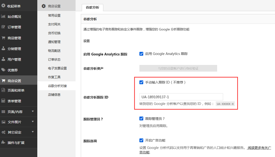 保存设置,店铺的Google Analytics就设置好啦!