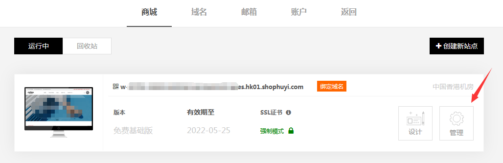 登录虎翼账号,找到需要设置的网站,点击【管理】
